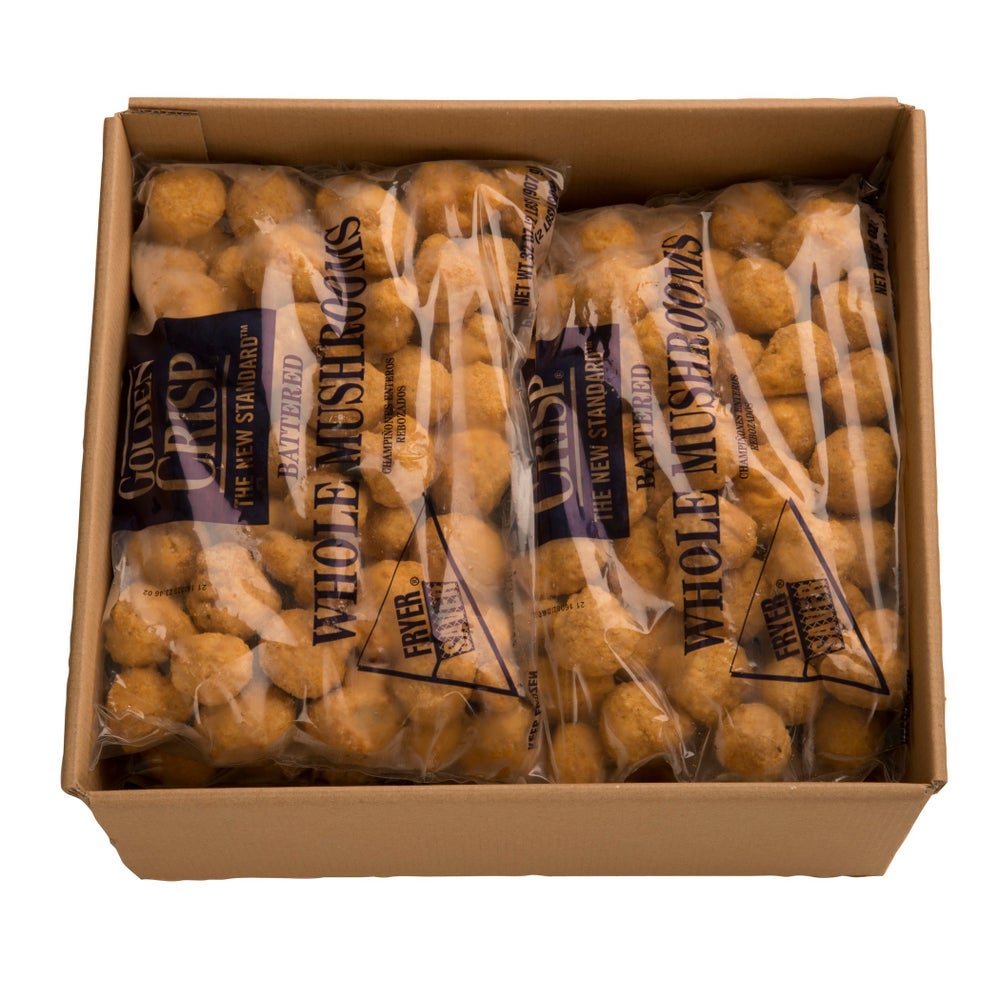 Golden Crisp Battered Whole Button Mushrooms, Ovenable, IQF, 2 Lb Bag, 6/Case