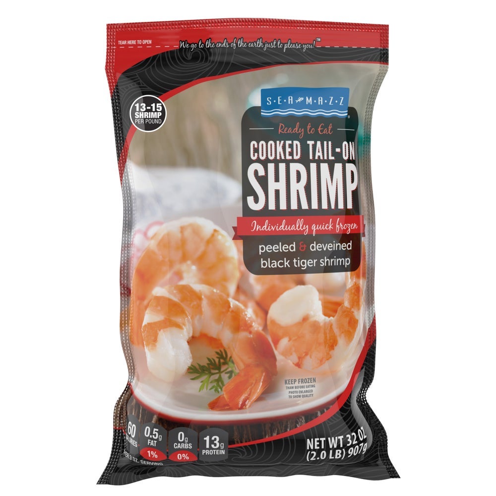 Seamazz Shrimp, Tail-On, Cooked, Frozen, 2 Lb Package, 5/Case
