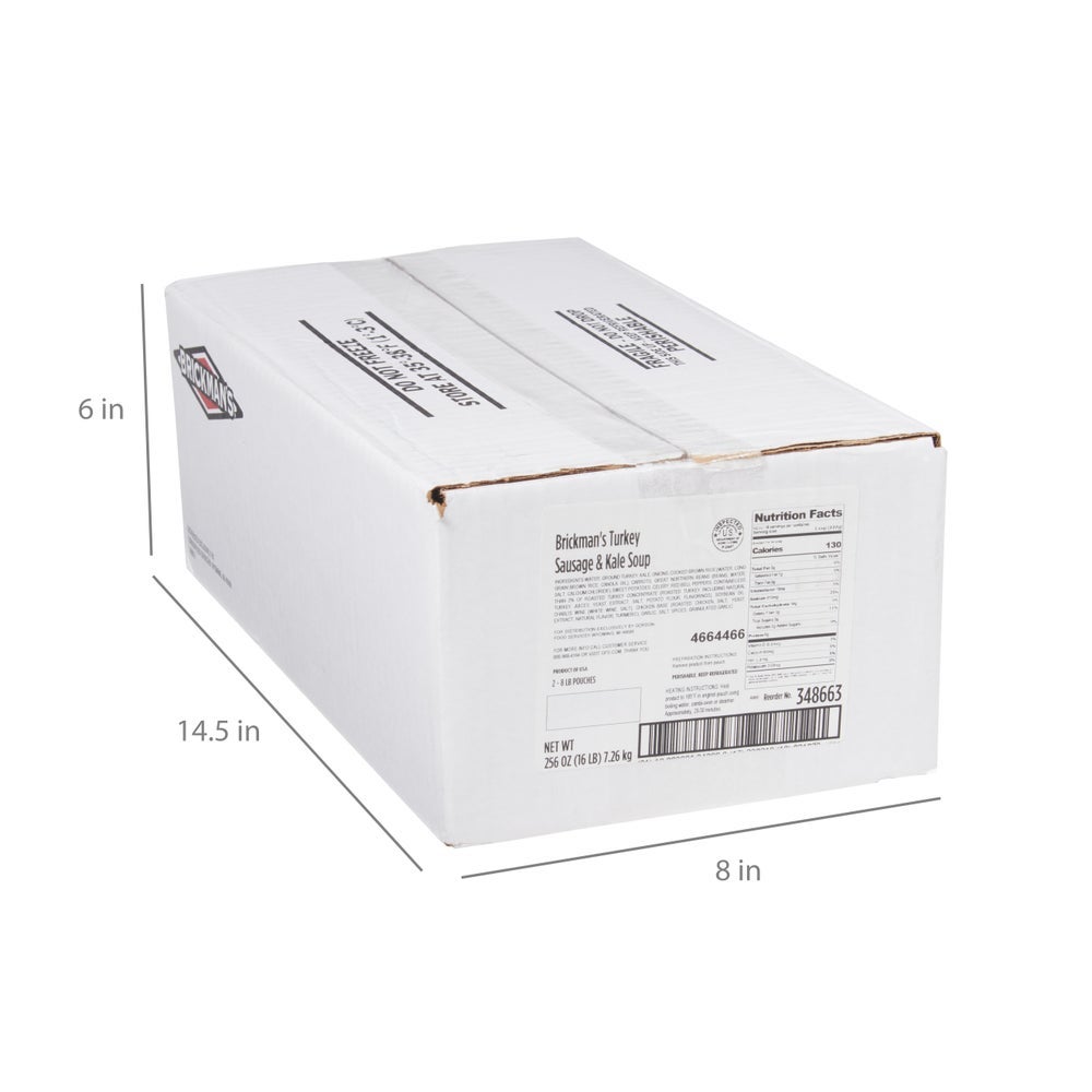 Brickman's Turkey Sausage & Kale Soup, Refrigerated, 8 Lb Bag, 2/Case
