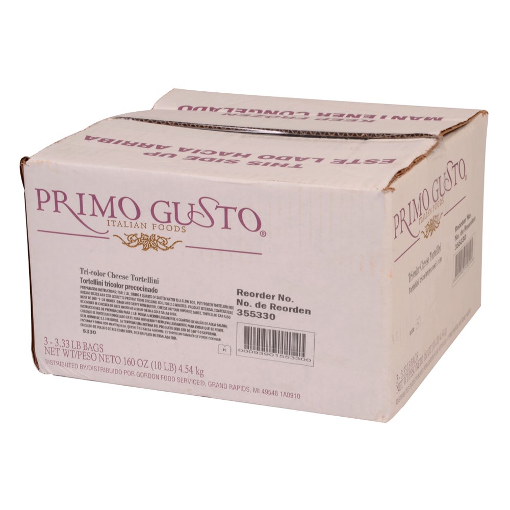 Pasta, Tortellini, Cheese, Tri-Color, Cooked, Frozen, 3.33 Lb Package, 3 Per Case
