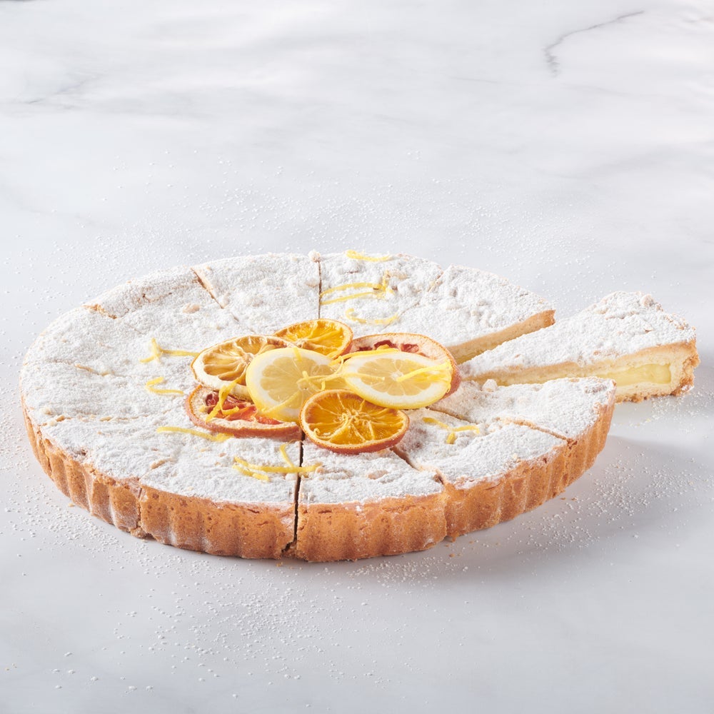 - These Lemon Torte cakes feature a bright and refreshing taste of lemon and are made of a shortcrust pastry filled with custard and garnished with pine nuts, almonds and icing sugar.