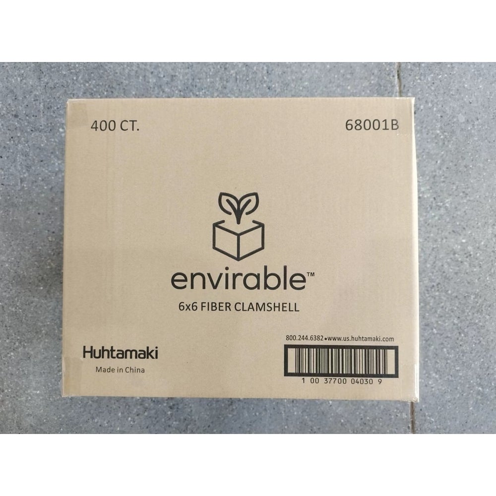 Enviable 6 x 6 x 3 Inch Molded Fiber Containers, Paper, White, Hinged, Compostable, 100 Ct Bag, 4/Case