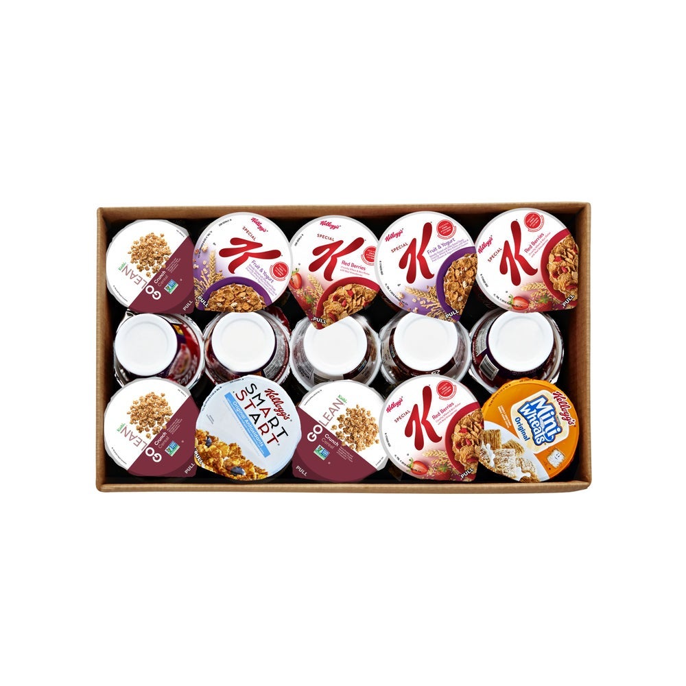 • The Wellness Assortment includes cups of Kelloggs Special K Assorted Flavors, Kelloggs Smart Start, Kelloggs Low Fat Granola with Raisins, Kelloggs Frosted Mini Wheats Bite Size, and Kashi GO Crunch.