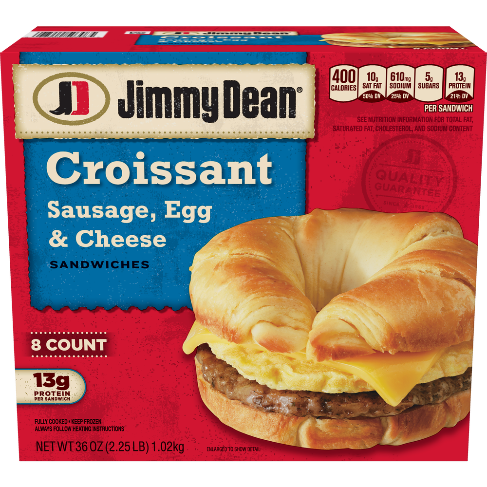 Jimmy Dean Sausage Egg Croissant Breakfast Sandwiches, Cheese, Frozen Individually Wrapped, 8 Ct Box, 3/Case