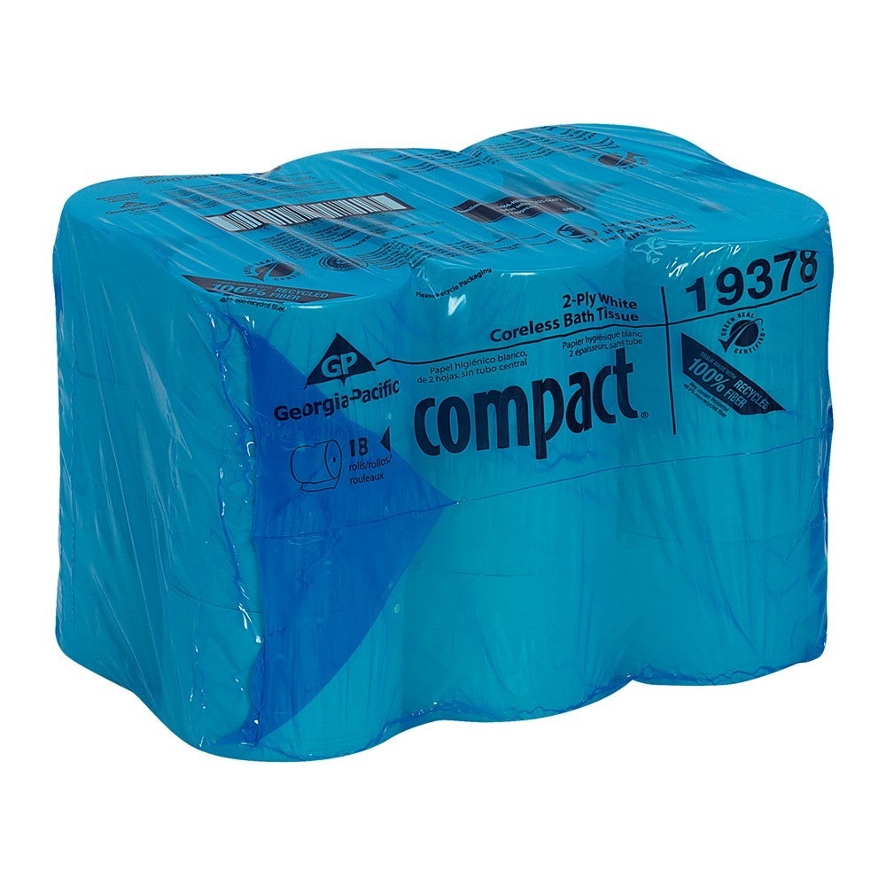 Compact Coreless Roll 2-Ply Toilet Tissue, White, 1500 Ct Package, 18/Case