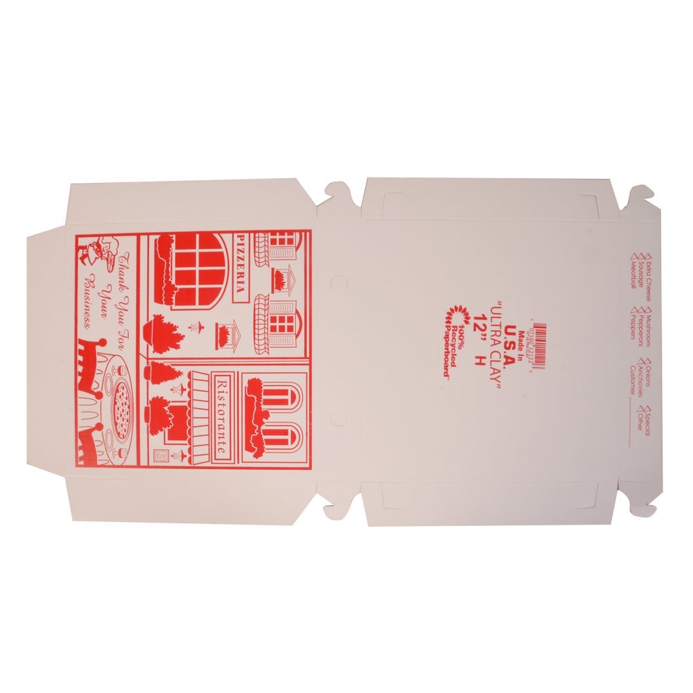 Freeport Paper 12 x 12 x 2 Inch Chipboard Pizza Boxes, White on Kraft, 100/Case