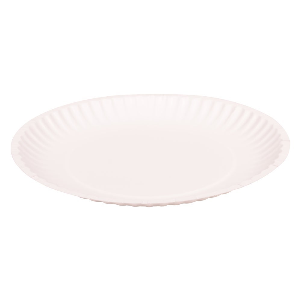 These environmentally friendly paper plates are constructed of natural bleached paper and are designed for single use.