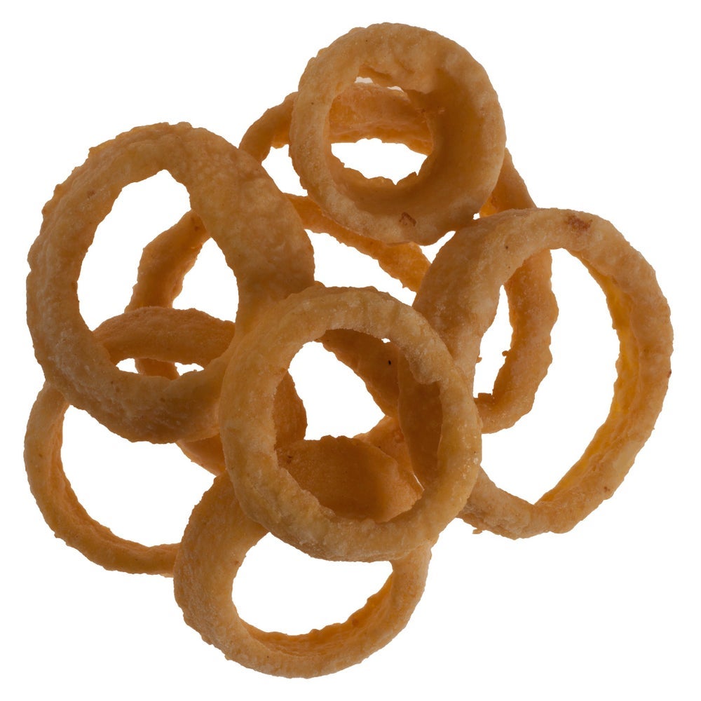 Sliced, fresh onion rings are coated in a beer batter for a unique taste and consistent, uniform golden brown appearance.