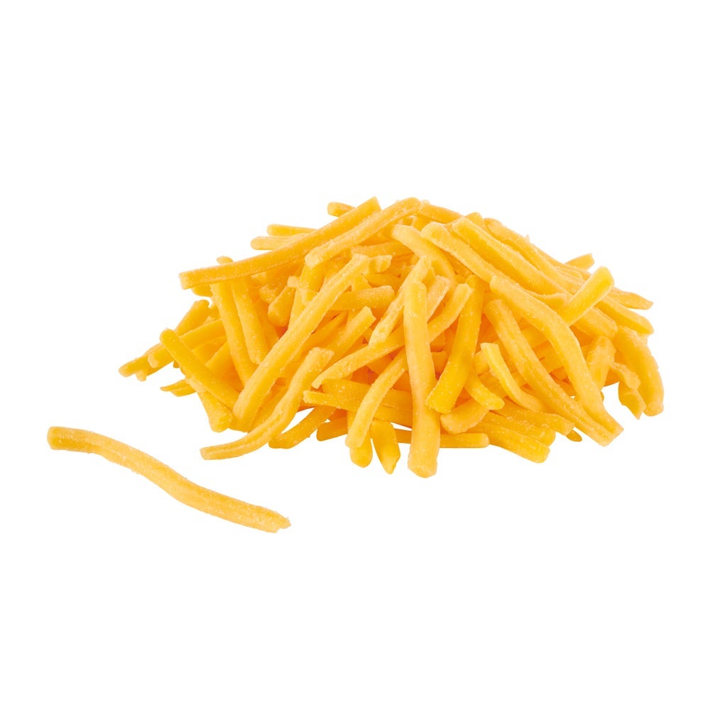 - The cheese blend is shredded for quick preparation time and reduced labor. The shred is flat and wide and will provide excellent coverage.