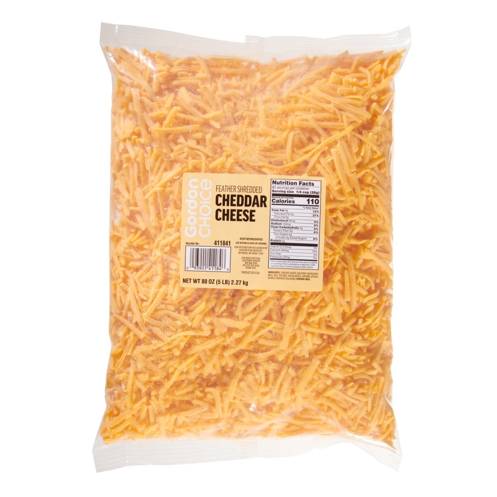 Gordon Choice Mild Cheddar Cheese, Feather Shredded, 5 Lb Bag, 4/Case
