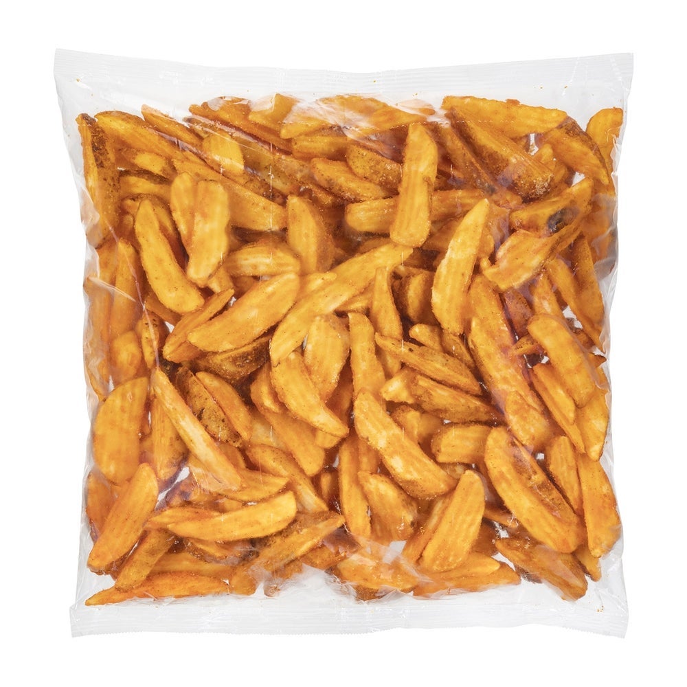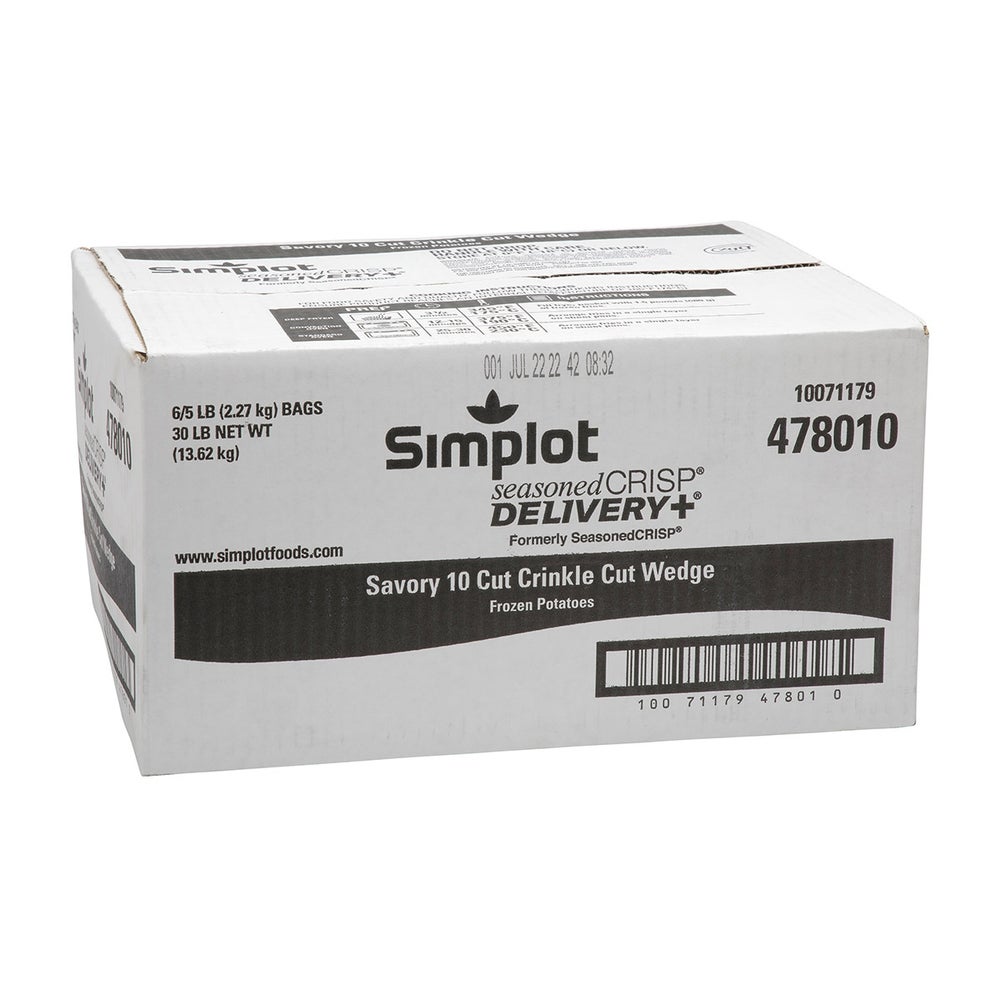 Simplot 3/8 x 3/8 Inch Wedge Cut French Fries, Battered, Bakeable, Frozen, 5 Lb Each, 6/Case
