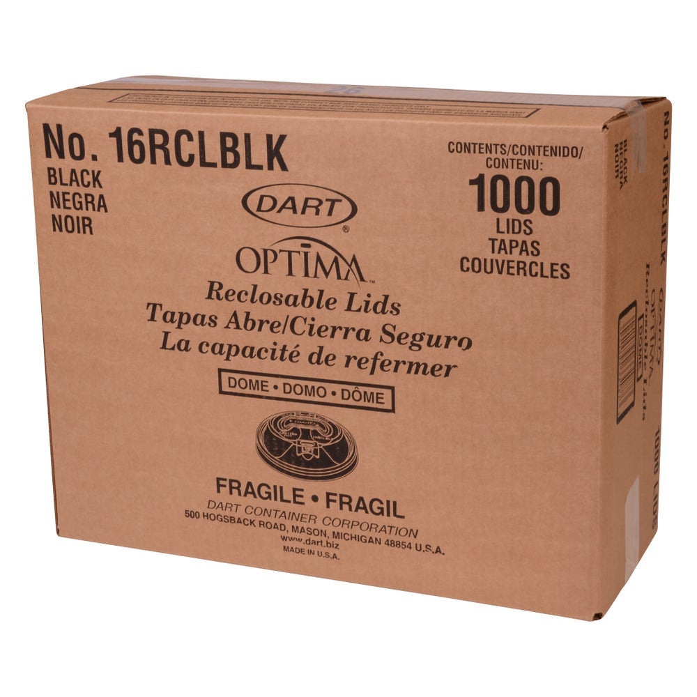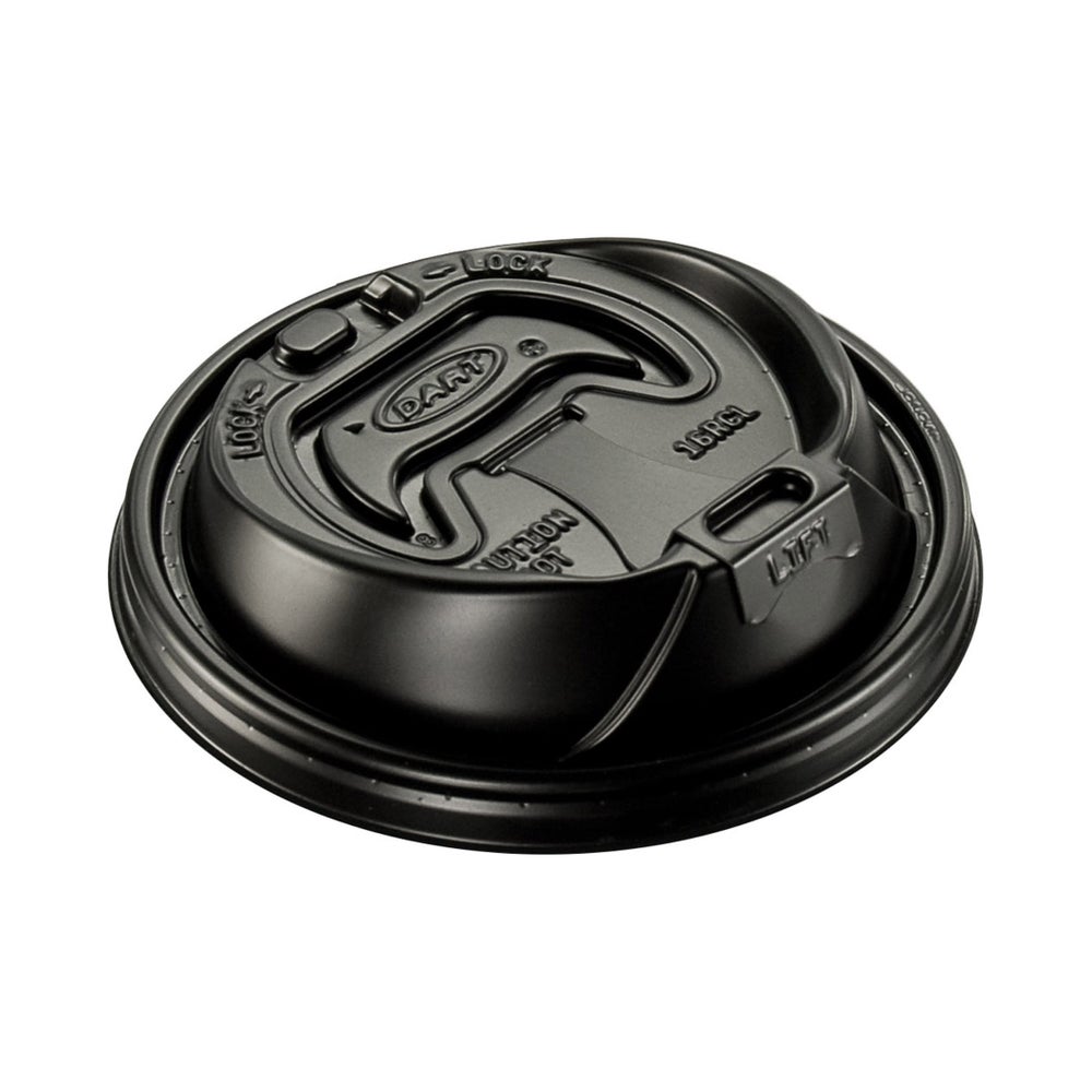 Dart Reclosable Plastic Dome Lids, Black, Polystyrene, for 12/14/16/20/24 Ounce Cups, 100 Ct Bag, 10/Case