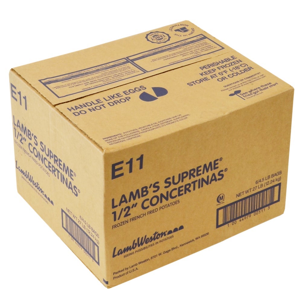 Lamb's Supreme 1/2 Inch Extra Long Fancy Crinkle Cut French Fries, Frozen, 4.5 Lb Package, 6/Case