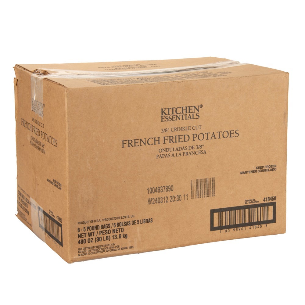 Kitchen Essentials 3/8 Inch Line Flow Crinkle Cut French Fries, Frozen, 5 Lb Each, 6/Case