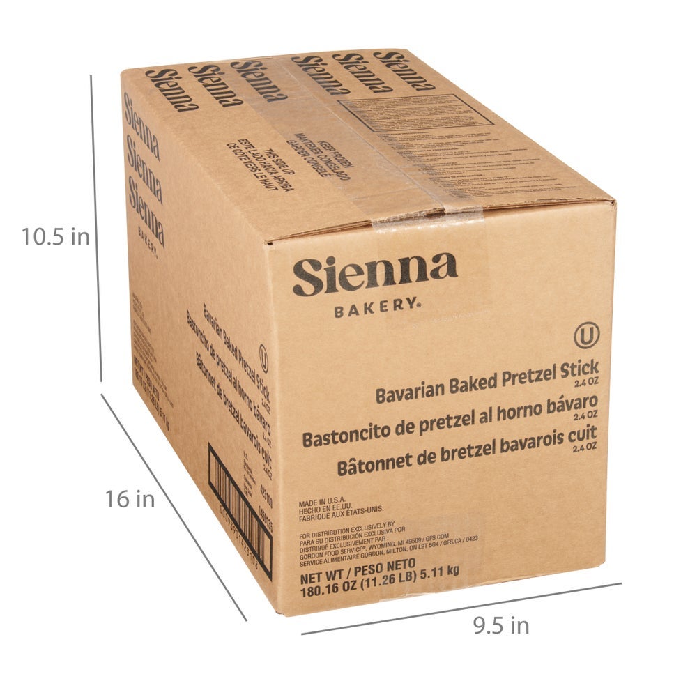 Sienna Bakery Bavarian Soft Pretzels, Stick, Frozen, 2.4 Oz Each, 72/Case
