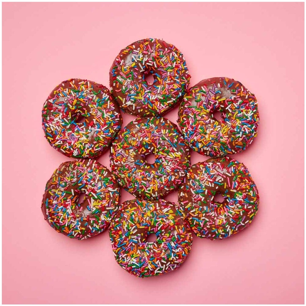 • These Chocolate Ring donuts are made with a yeast-raised dough and are covered in a rich chocolate coating topped with rainbow sprinkles.
