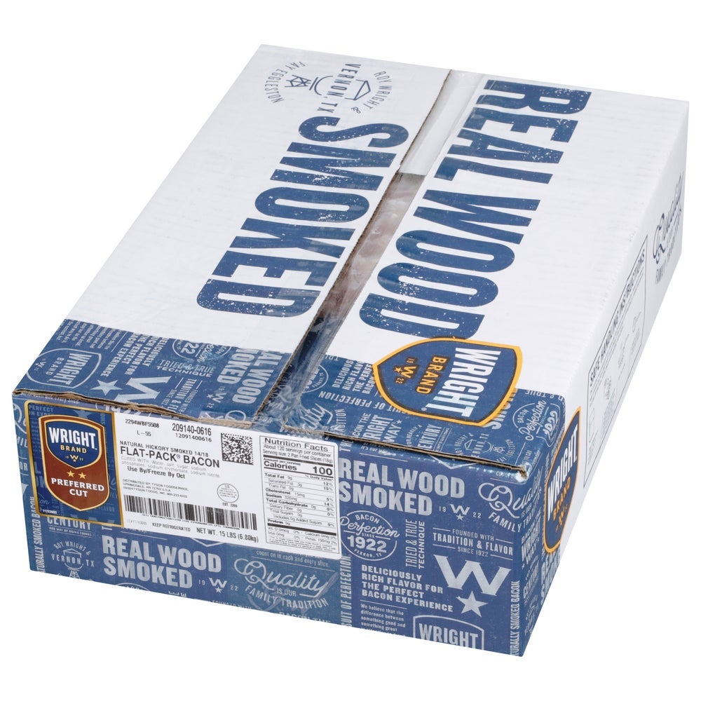 Wright Hickory Smoked Sliced Bacon, 14-18 Slicers per Pound, Raw, Fresh, 15 Lb Package, 1/Case