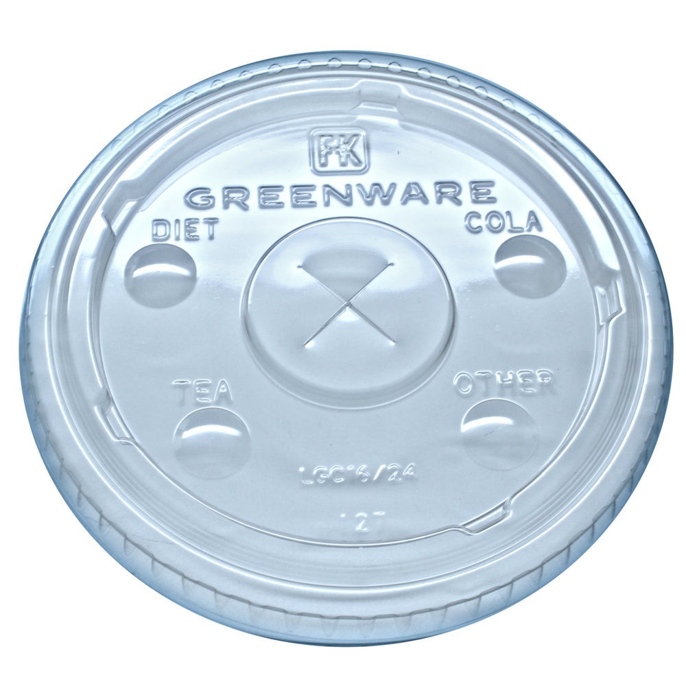 Greenware X-Slot Plastic Lids, Compostable, Clear, PLA, for 16, 20, 24 Ounce Cups, 100 Ct Package, 10/Case