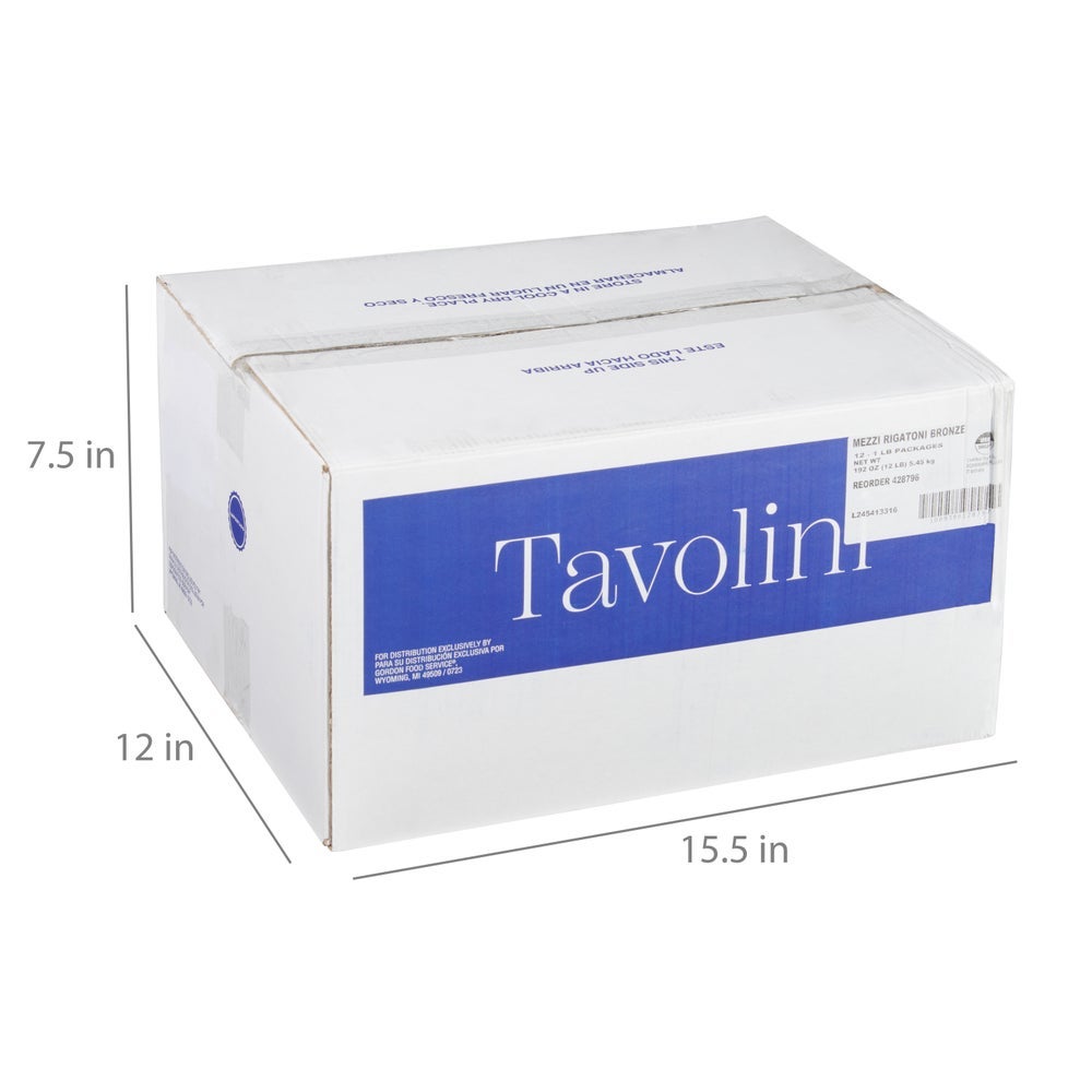 Tavolini - Premium Rigatoni Mezza Pasta, Bronze Cut, 1 Lb Package, 12/Case