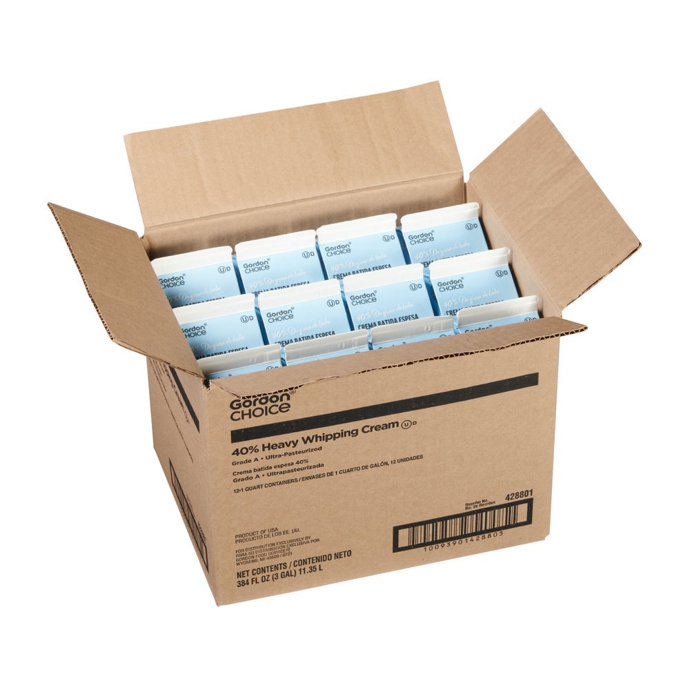 Gordon Choice 40% Heavy Whipping Cream, Grade A, Extended Shelf Life, Refrigerated, 1 Qt, 12/Case