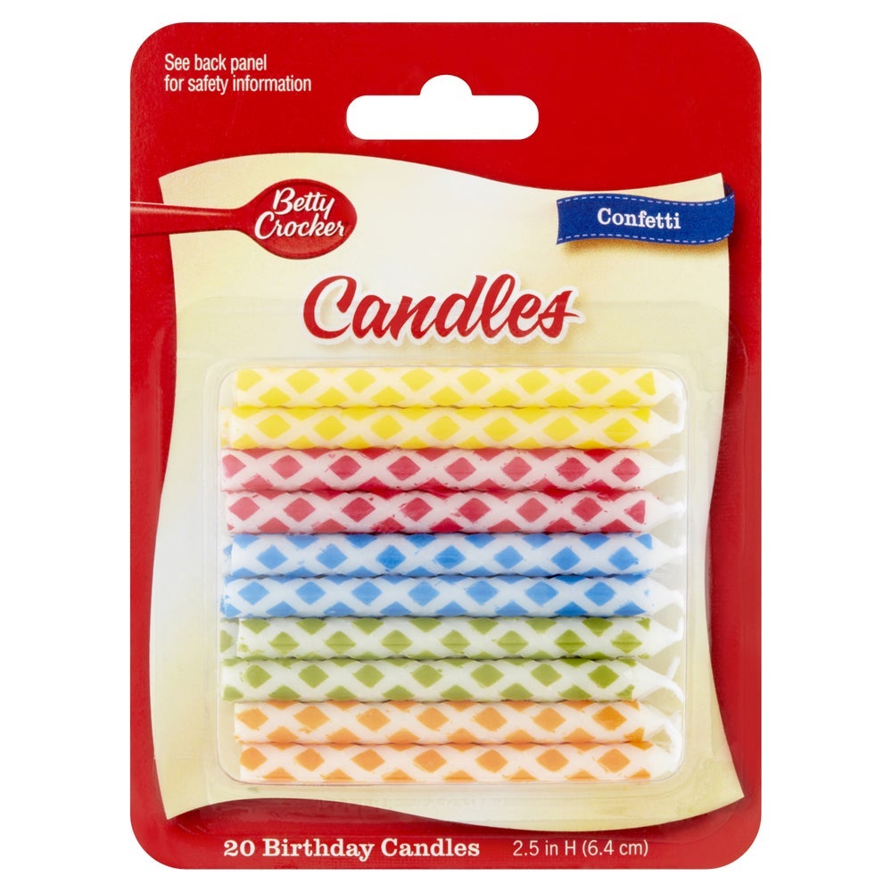 Betty Crocker Birthday Candle Sets, Assorted Colors, Confetti, 2.5 Inch, 20 Ct Package, 12/Case