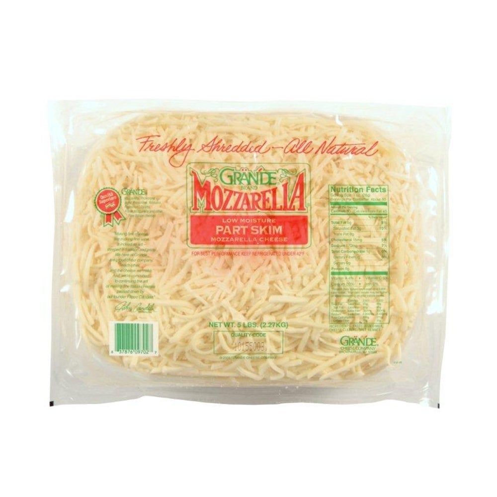 Grande Part-Skim Mozzarella Cheese, Feather Shredded, 5 Lb Package, 6/Case