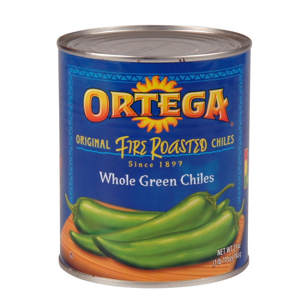 Ortega Whole Green Chilies, Fire-Roasted, 27 Oz Each, 12/Case