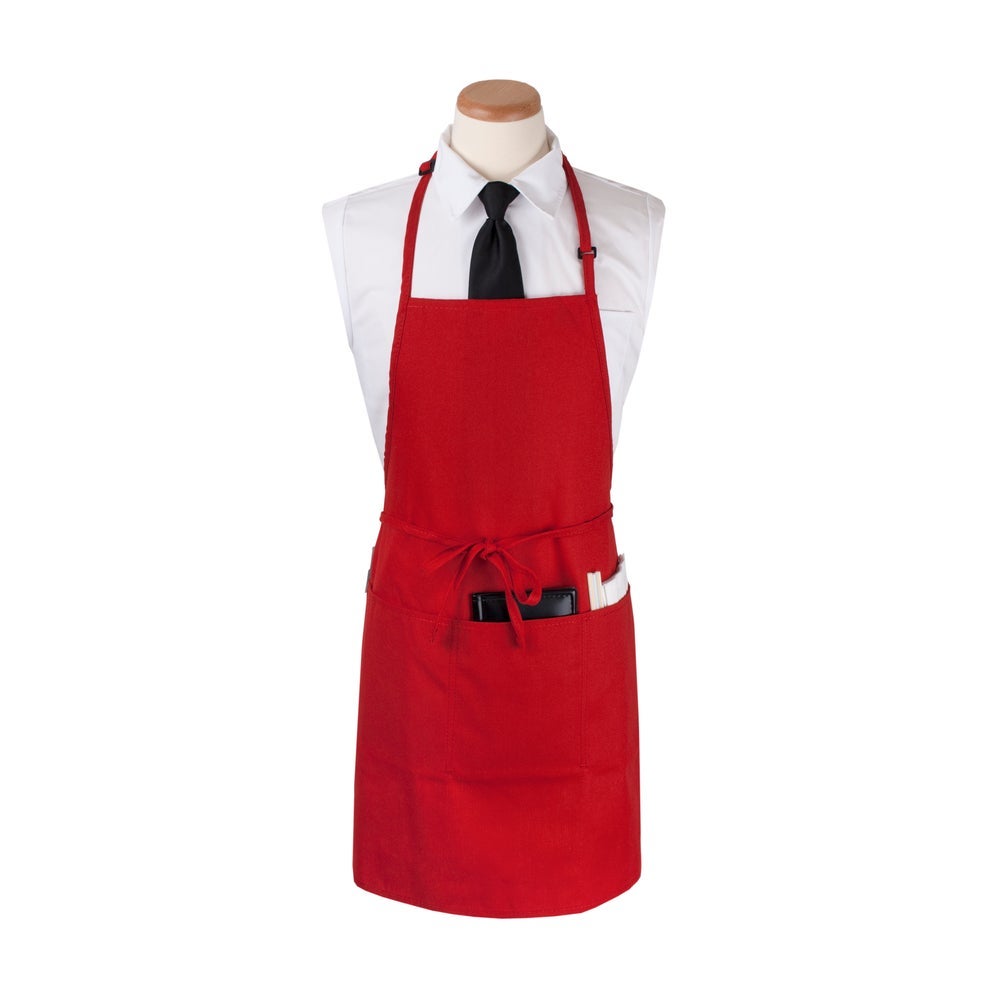 Ritz Chef's Line 3-Pocket Bib Apron, Red, 26 x 31 Inch, 100% Spun-Polyester, with Adjustable Buckle on Neck Strap, 1/Each