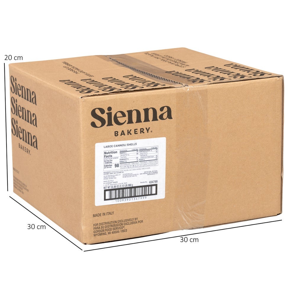 Sienna Bakery Large Cannoli Shells, 20 Gram, 6 Ct Tray, 8/Case