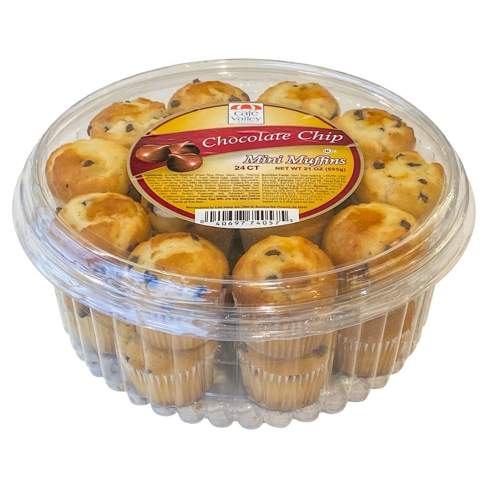 Cafe Valley Bakery Mini Chocolate Chip Muffins, 0.88 Ounce, 24 Ct Package, 10/Case