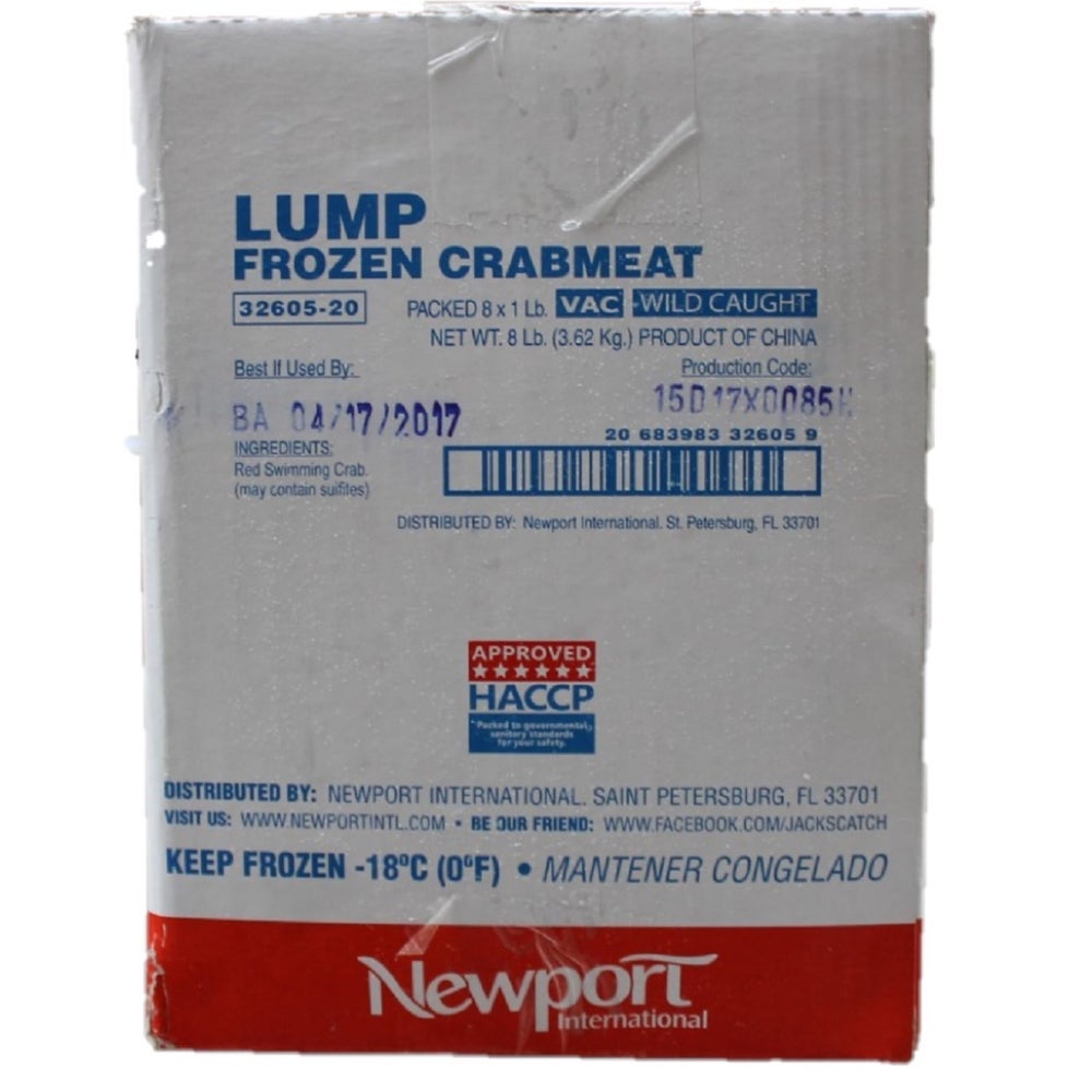 Jack's Catch Lump Crab Meat, Frozen, 1 Lb Bag, 8/Case