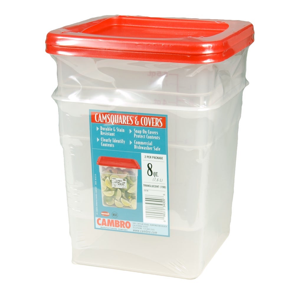 Cambro 8 Quart Square Food Container, Translucent, Polyethylene, with Lid, 2 Ct Package, 1/Case