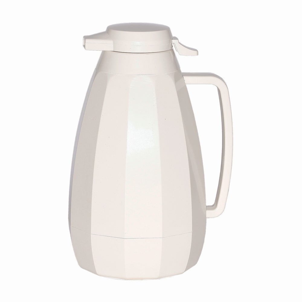 Service Ideas 2 Liter Beverage Carafe, Push-Button Lid, White, Plastic, 1/Each