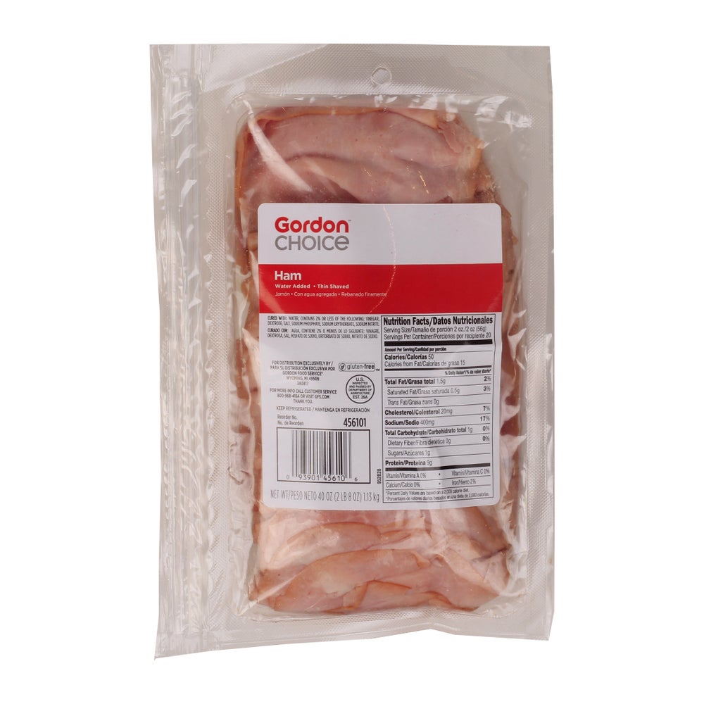Gordon Choice Hickory-Smoked Water-Added Ham, Thinly Shaved, Fresh, 2.5 Lb Package, 4/Case
