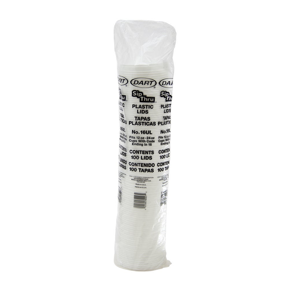 Dart Sip-Thru Plastic Lids, White, Polystyrene, for 12/14/16/20/24 Ounce Cups, 100 Ct Package, 10/Case