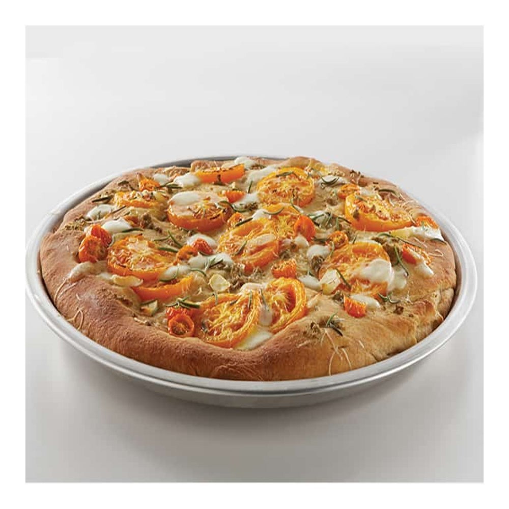 These pie pans are made from 18-gauge aluminum and can be used for serving many types of items.
