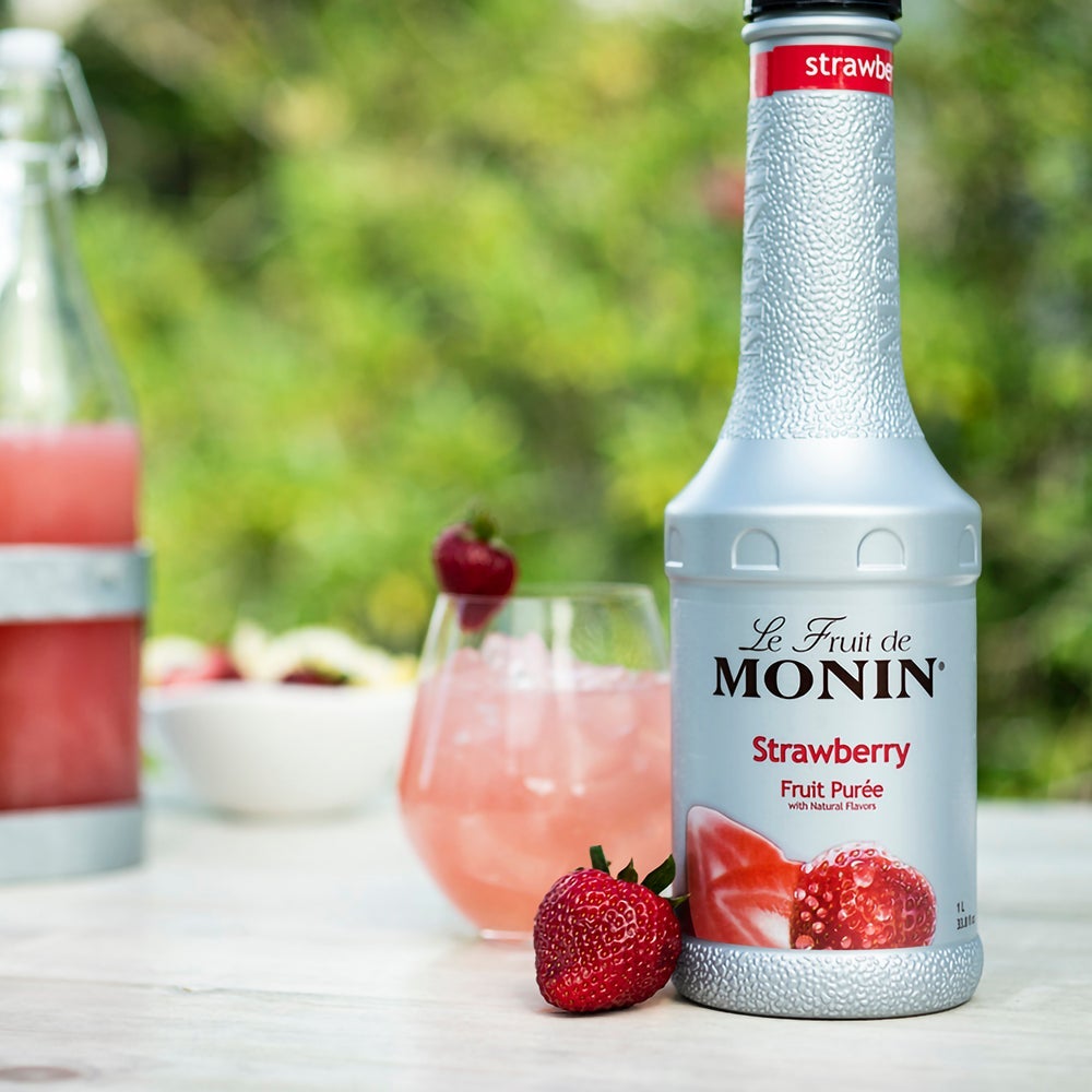 Monin Puree Strawberry Beverage Syrup, Plastic, 1 Ltr, 4/Case