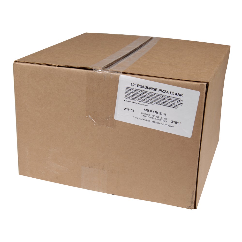 These cheese pizzas allow for customization through the addition of toppings, while the ready-rise dough features a layer of sauce and a layer of cheese, which cook to a golden brown color.