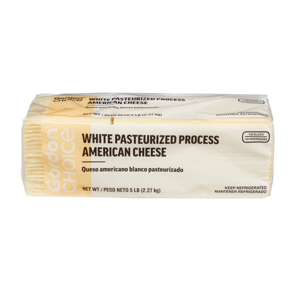 Gordon Choice White American Cheese, Sliced, 120 Count, 0.66 Ounce, 5 Lb Loaf, 4/Case