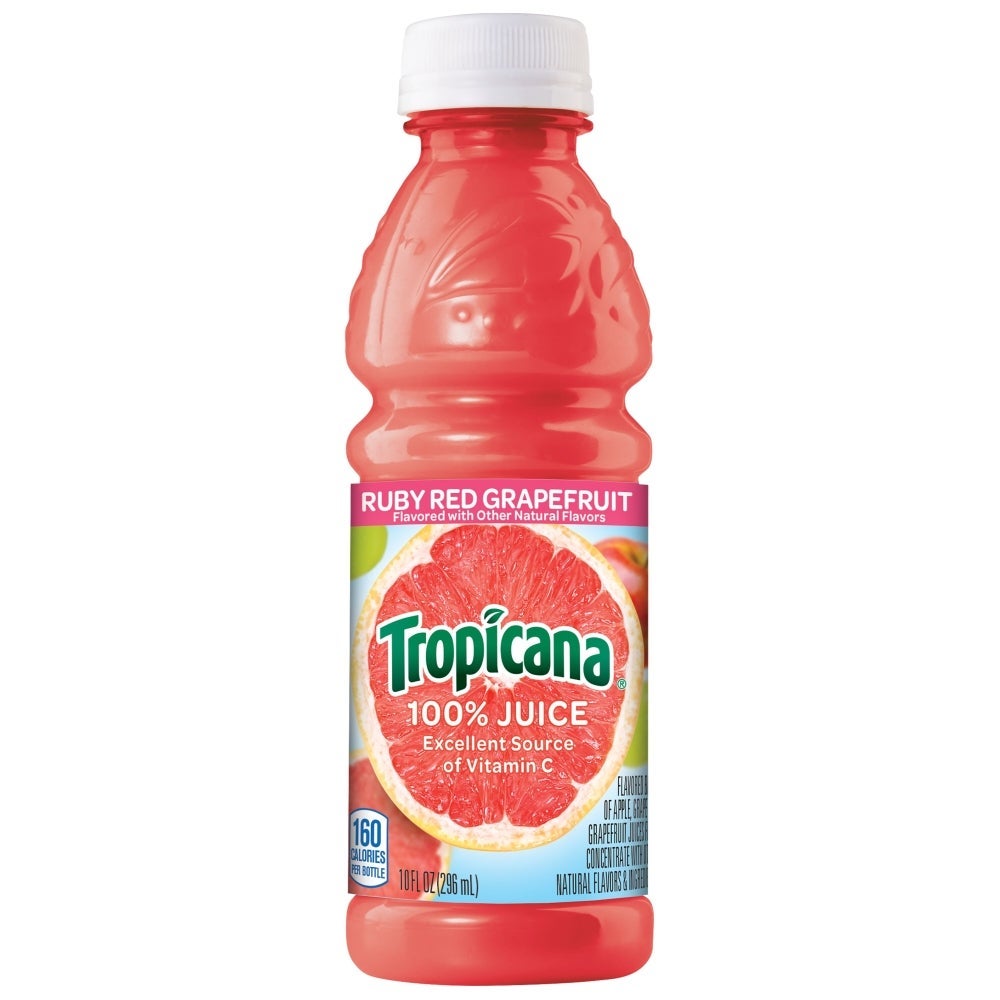 Tropicana 100% Ruby Red Grapefruit Juice, Shelf-Stable, Single-Serve, 10 Fl Oz Bottle, 24/Case