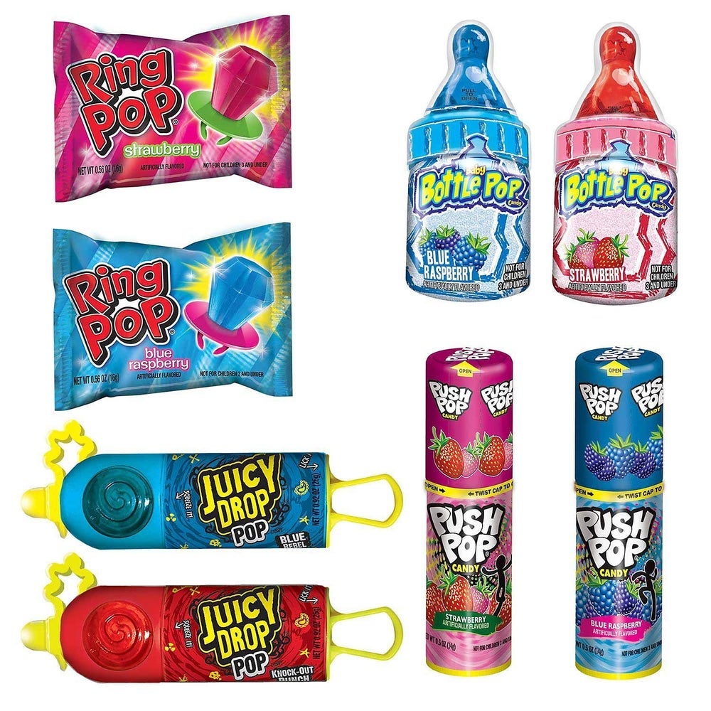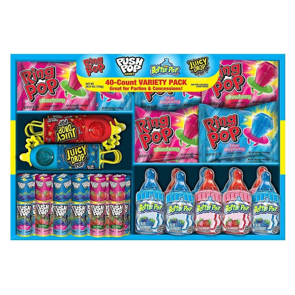 Bazooka Candy Suckers, Ring/Push/Bottle/Juicy Drop, Variety Pack, 18 Ct Box, 4/Case
