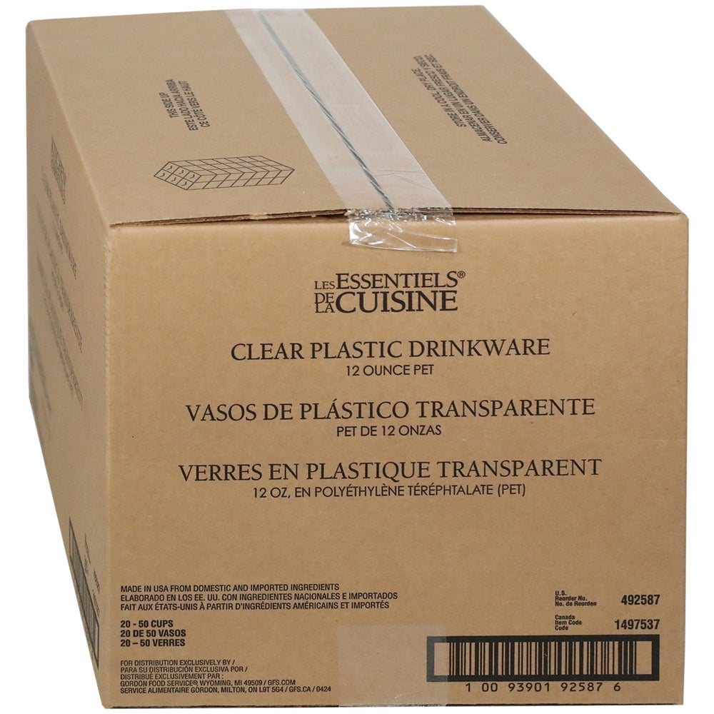 Kitchen Essentials 12 Ounce Plastic Cold Cups, Clear, PET, 50 Ct Package, 20/Case