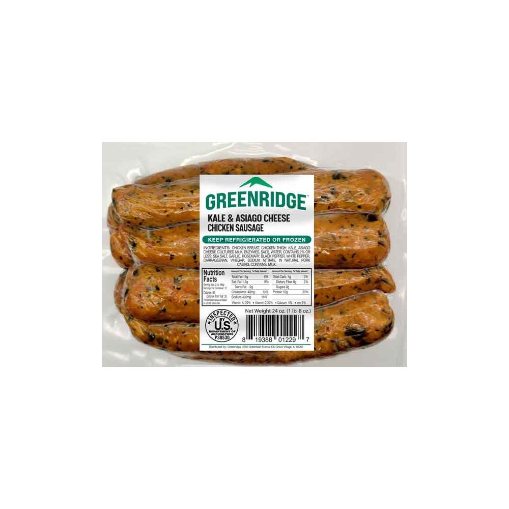 Greenridge Farm Kale & Asiago Chicken Sausage, Fresh, 24 Oz Package, 8/Case