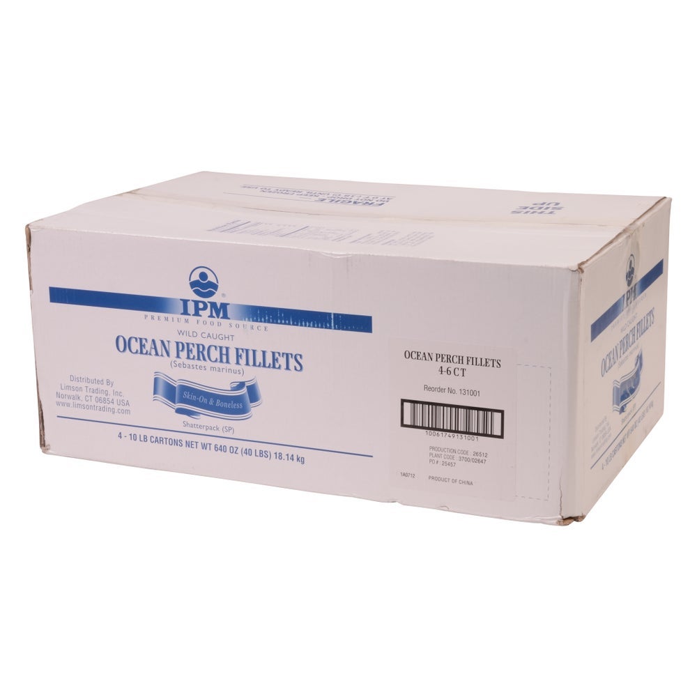 Packer Label North Atlantic Ocean Perch Fillets, Wild-Caught, Skin-On, 4-6 Count per Pound, Raw, Frozen Shatter-Pack, 10 Lb Box, 4/Case