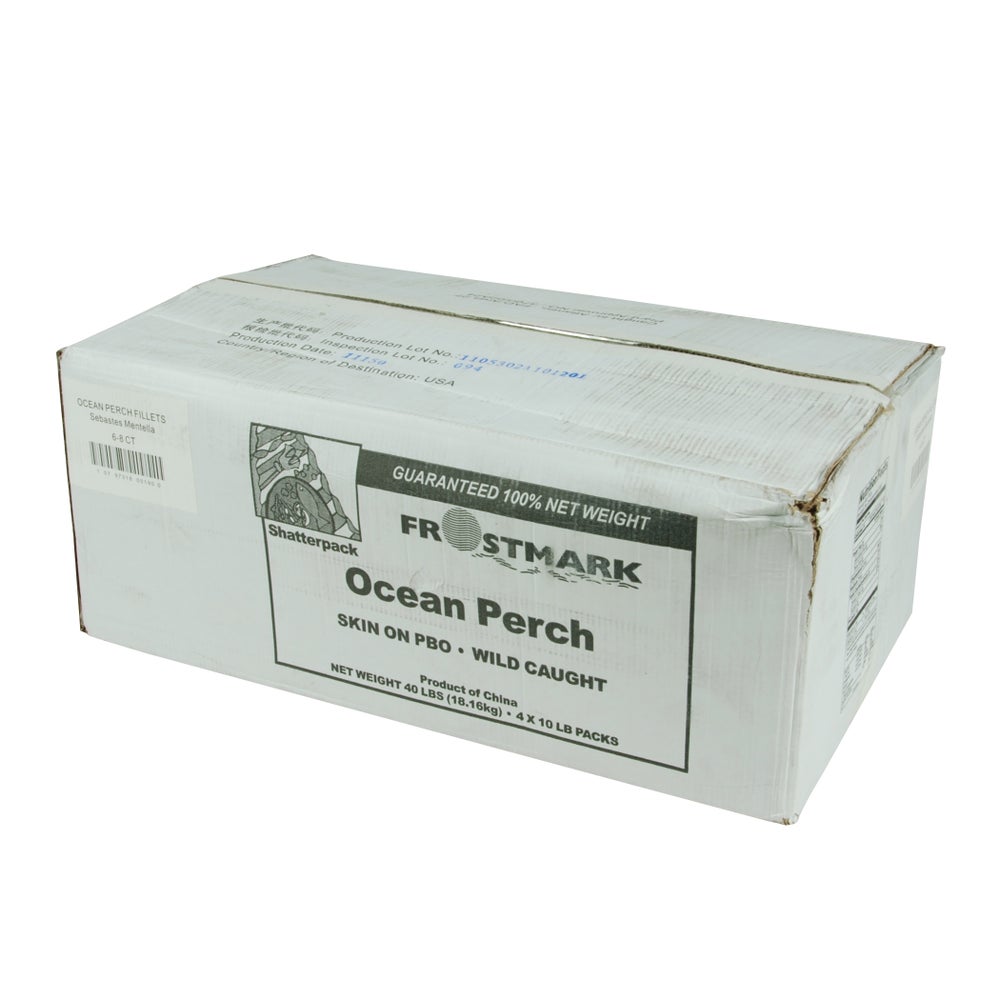 Packer Label North Atlantic Ocean Perch Fillets, Wild-Caught, Pin-Bone Out, Skin-On, 6-8 Count per Pound, Raw, Frozen, Shatter-Pack, 10 Lb Box, 4/Case