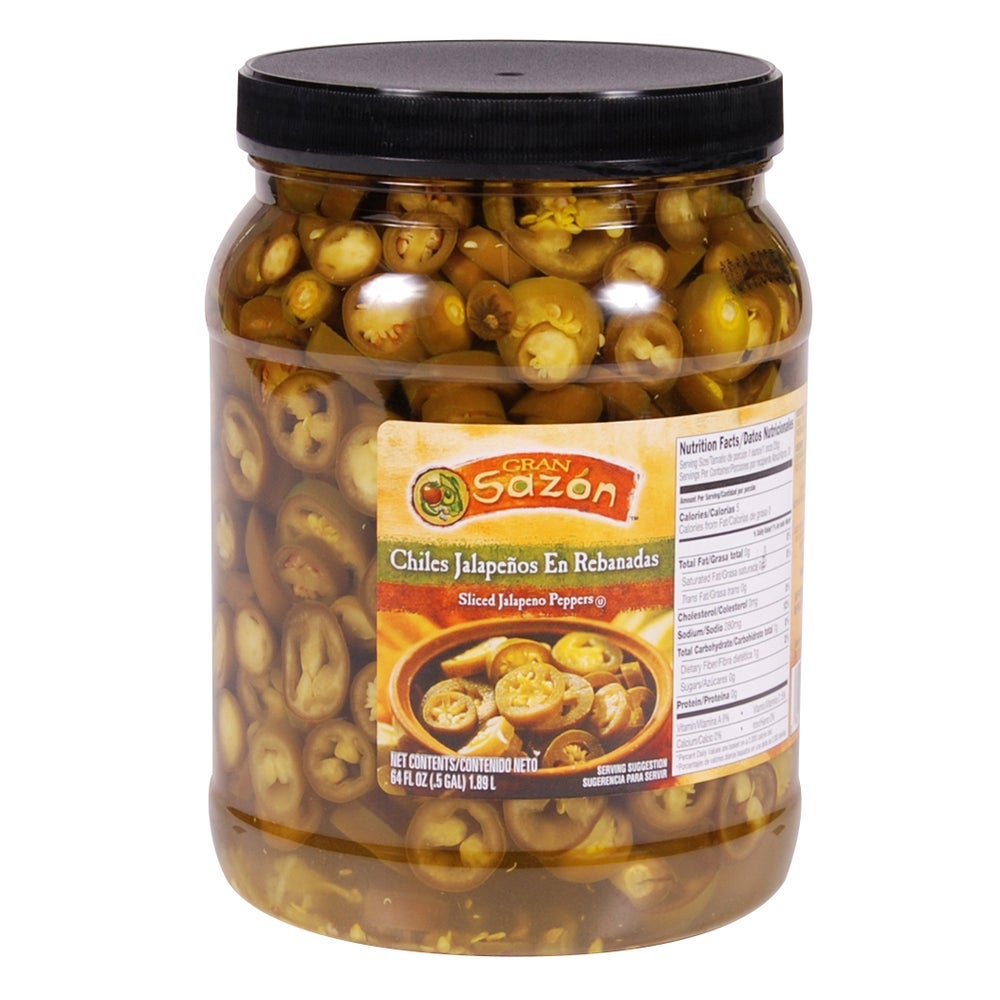 Gran Sazon Sliced Jalapeno Peppers, Plastic, 0.5 Gal, 6/Case