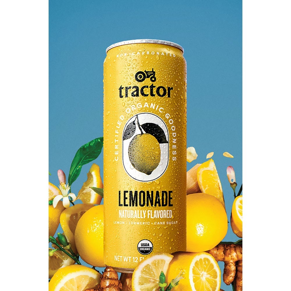 • Tractor Beverage Lemonade RTD Beverage is a combination of juicy, ripe lemons, a dash of vibrant turmeric and perfectly proportioned all-natural sugarcane. Our proprietary recipe for liquid sunshine, made from pulp for a refreshing balance of tart and sweet.