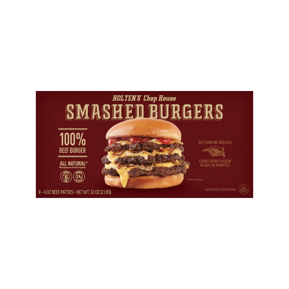 Chop House Ground Beef Smashburger Patties, Frozen, 4 Ounce, 8 Ct Box, 6/Case