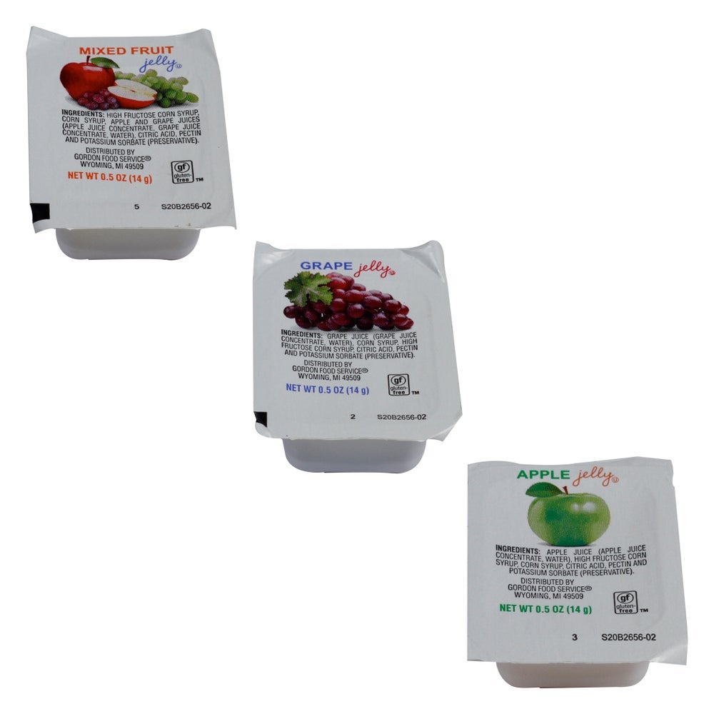 Jelly, Assortment, Grape/Mixed Fruit/Apple, Cups, 0.5 Oz Each, 200 Per Case