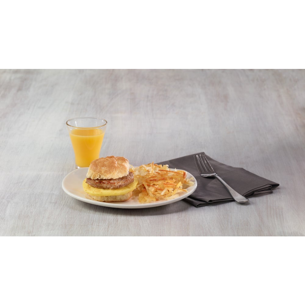 - A good breakfast platter always has eggs and sausage on it. These maple-flavored sausage patties are made with 65% lean trim and are suitable as a breakfast sandwich or as a side with any breakfast dish.